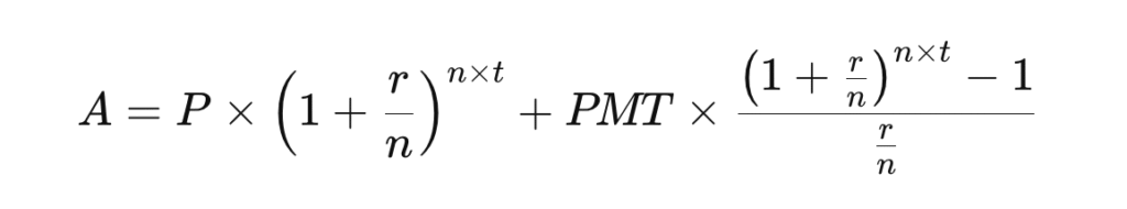 PMT = säännöllinen talletus per korkojakso (esim. kuukausisäästö)